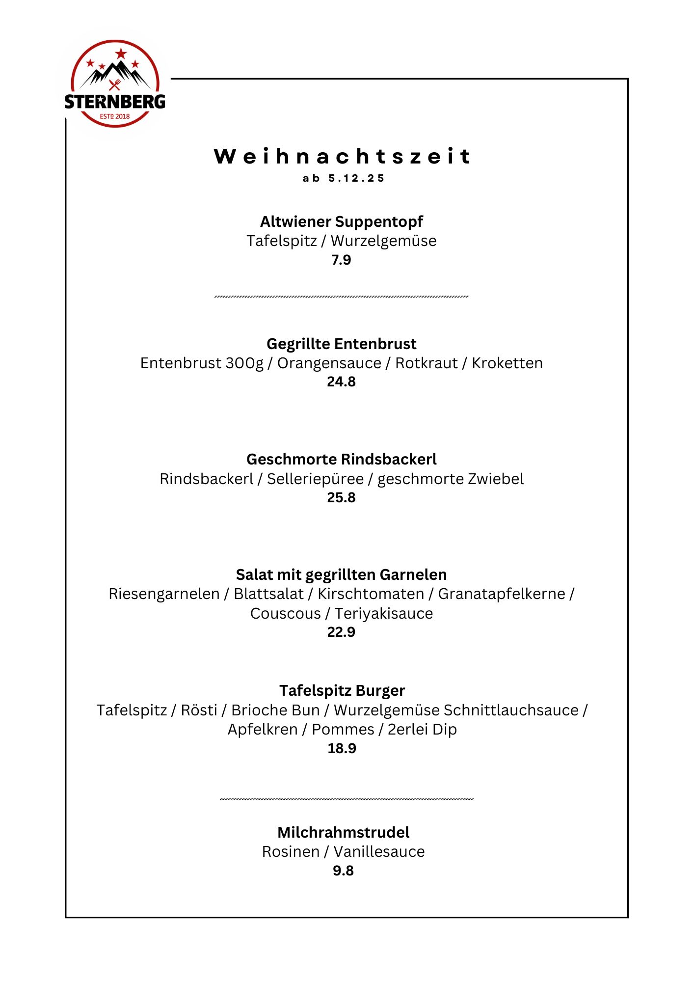 reservierung@sternberg1220.at oder Sie rufen uns währen unserer Öffnungszeiten unter +43(0) 1 20 22 878 an!